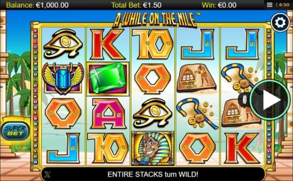 A While on the Nile vie pelaajan Egyptin Niilin taianomaisiin maisemiin. Se muodostuu viidestä kiekosta, neljästä rivistä ja 50 voittolinjasta. Teoreettinen palatusprosentti eli RTP on 95,5 %, mikä on hieman keskivertoa alhaisempi. Slotin panosskaala on 0,20-875 euroa, joten se soveltuu myös todella riskinnälkäisille pelaajille. A While on the Nilen runsaat bonustoiminnot pitävät sisällään Bonus Bet -toiminnon lisäksi ilmaisia kierroksia ja bonuspelin.